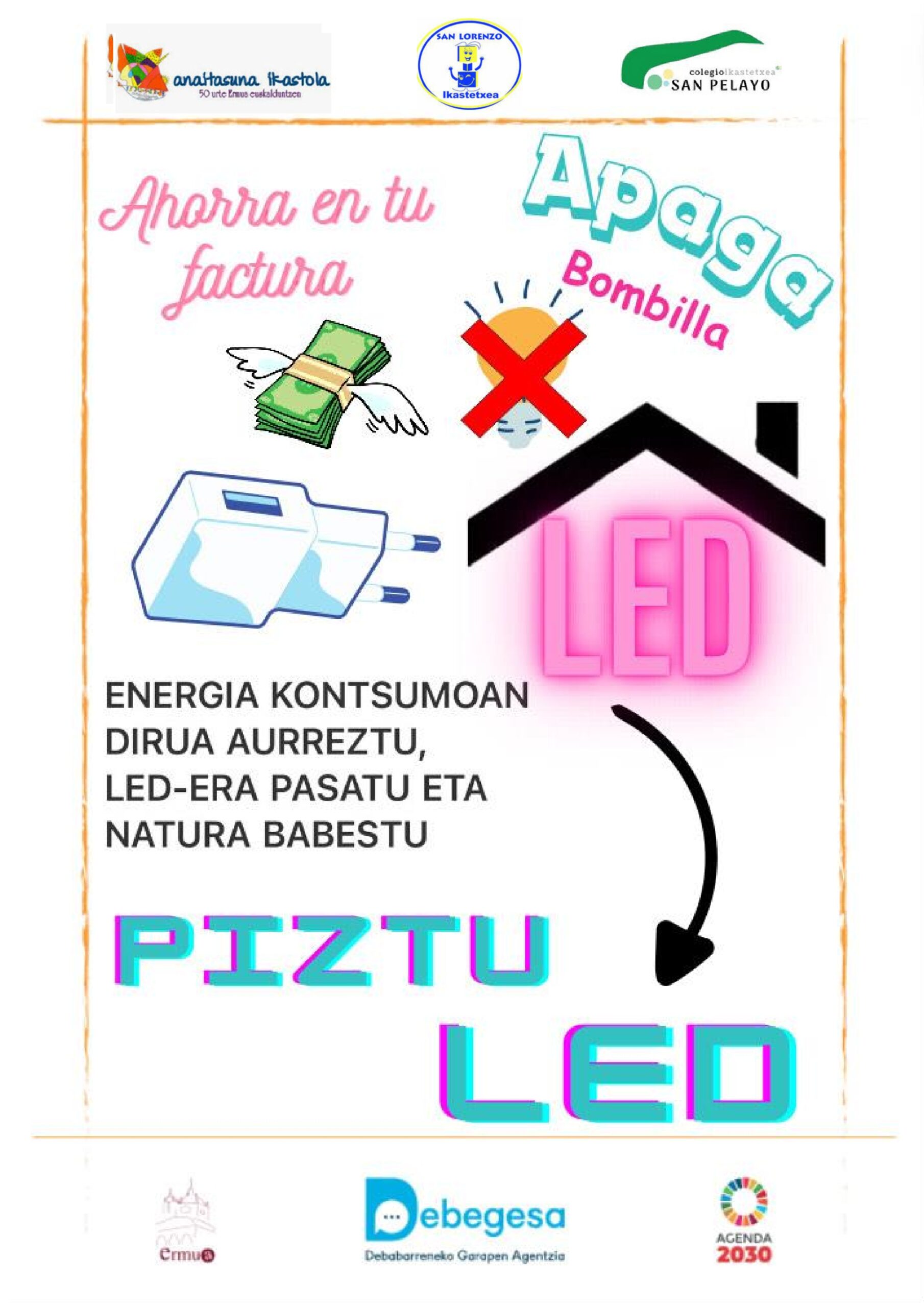 El cartel que se ha diseñado en nuestro centro es el siguiente y animamos a nuestras familias a cambiar las bombillas por luces LED.