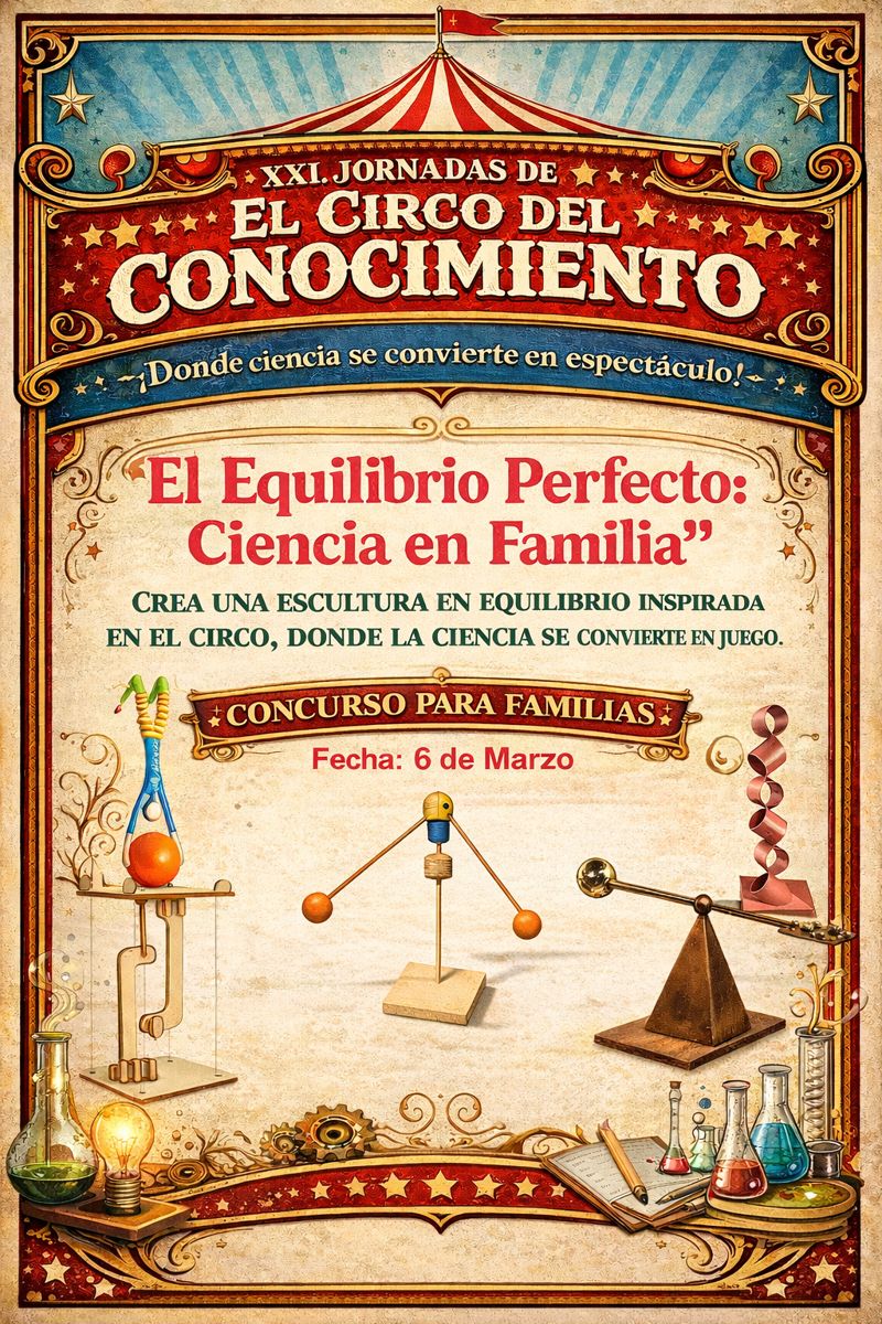 Con motivo de las XXI Jornadas de Ciencia y Tecnología: “El Circo del Conocimiento”, invitamos a todas las familias a participar en el concurso “El equilibrio perfecto: ciencia en familia”, una propuesta creativa donde la ciencia se convierte en juego.