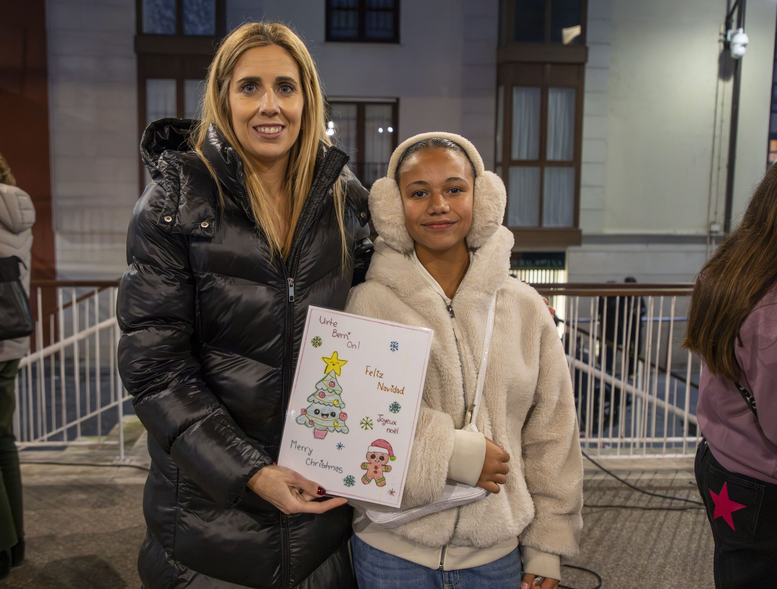 Isabella recogió su premio de manos de la alcaldesa Beatriz Gámiz, y además tuvo el honor de pulsar el botón que encendió la iluminación navideña de este año, un momento muy especial para ella y su familia.